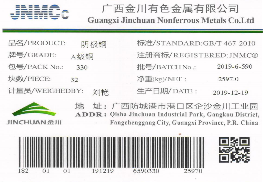 11月11日,上海期貨交易所(下稱上期所)子公司上海國際能源交易中心(下稱上期能源)發(fā)布了國際銅期貨合約及相關(guān)規(guī)則,根據(jù)《上海國際能源交易中心交割細(xì)則》《上海國際能源交易中心陰極銅期貨合約》和《國際銅交割商品注冊管理規(guī)定》等有關(guān)規(guī)定,金川銅【品牌:JNMC-A級銅(傳統(tǒng)電解),規(guī)格:1030*1000*15】和廣西銅【品牌:JNMC(防城港/永久陰極-K)A級銅(永久陰極-K),規(guī)格:1030*1010*10】成為首批國際銅期貨可交割品牌,更好的增加了金川集團銅產(chǎn)品的貿(mào)易渠道及轉(zhuǎn)口業(yè)務(wù)、進(jìn)口業(yè)務(wù)的便利性和安全性。