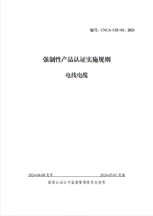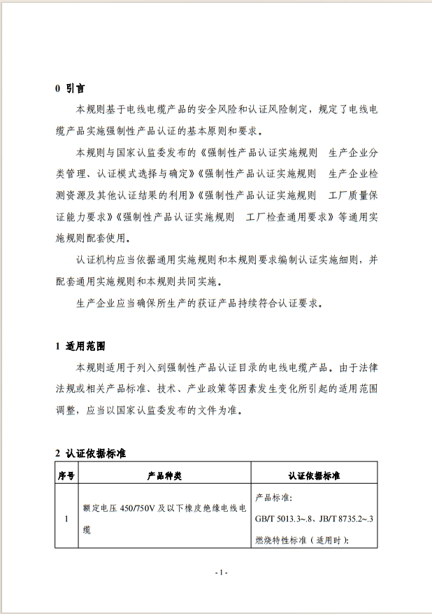 電線電纜 強制性產(chǎn)品認(rèn)證實施規(guī)則
